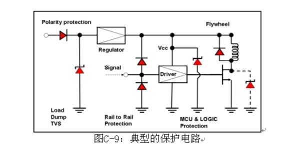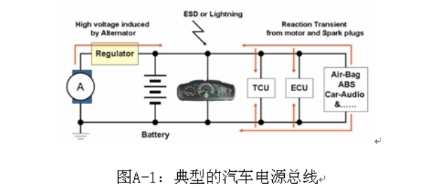 汽車電子,如電子控制單元、傳感器和娛樂系統(tǒng),都是連接在一根電力線上。這些電子產(chǎn)品的功率來源是電池和發(fā)電機,兩者的輸出電壓都不穩(wěn)定,會受到溫度、操作狀態(tài)和其他條件的影響。此外,由于這些系統(tǒng)使用了螺線管負載,如燃料噴射、氣門、發(fā)動機、電氣和水解控制器,ESD、尖峰噪聲和各種瞬變及浪涌電壓都會進入電源及汽車系統(tǒng)的信號線。