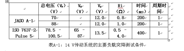 I)負載突降測試的規(guī)范和結(jié)果