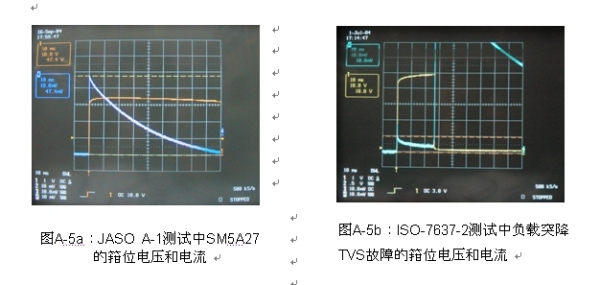 圖A-5a所示為JASO A-1測試中SM5A27的電流和電壓波形。