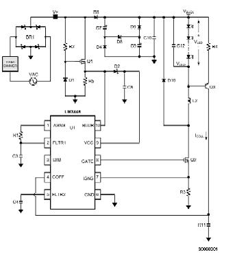 LM3445TRIAC調光LED驅動器,應用電壓范圍從80VAC到270VAC,導通角檢測器/譯碼器可以實現(xiàn)寬全范圍的(100:1)調光,內置3000Ω泄流電阻確保TRIAC信號譯碼無誤,正在申請注冊專利的調控架構可確保恒定的紋波電流以延長LED的工作壽命,可調節(jié)輸出電流高至1A,可通過主/從操作方式控制多條燈串的亮度。
