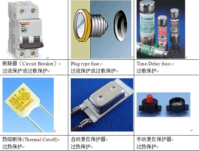 附圖Fig-1,摘自CEC Part I,說明了馬達(dá)主回路的一些保護(hù)措施。我們先了解一下主要的馬達(dá)保護(hù)器的分類與用法,如表-1: