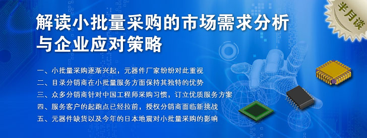 元器件缺貨以及今年的日本地震會(huì)給某一些,特別是日本的原廠的生產(chǎn)帶來直接的影響,或許會(huì)造成更多的元器件缺貨的問題,所以有時(shí)候,目錄分銷商的一些數(shù)量不多的庫存可能會(huì)被客戶很快的一次性拿走,就不能再服務(wù)其他客戶。這是小批量采購受到的影響因素之一。