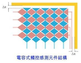 圖1(b)電容式觸控面板感應(yīng)電容范例:內(nèi)在投射型觸控玻璃