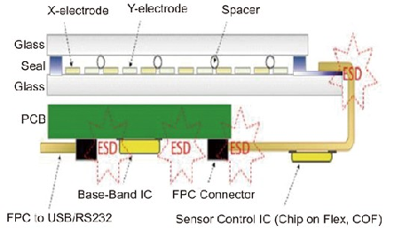 圖2 控制IC在軟板上的觸控模組之ESD潛在危險(xiǎn)
