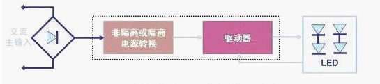 led 的排列方式及LED光源的規(guī)范決定著基本的驅(qū)動(dòng)器 要求。LED 驅(qū)動(dòng)器的主要功能就是在一定的工作條件范圍下限制流過(guò)LED 的電流, 而無(wú)論輸入及輸出電壓如何變化。LED驅(qū)動(dòng)器基本的工作電路示意圖如圖4所示,其中所謂的“隔離”表示交流線(xiàn)路電壓與LED(即輸入與輸出)之間沒(méi)有物理 上的電氣連接,最常用的是采用變壓器來(lái)電氣隔離,而“非隔離”則沒(méi)有采用高頻變壓器來(lái)電氣隔離。