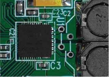 與裸露焊盤相接的敷銅塊應該用多個過孔連到PCB背面的其他敷銅塊上,并應該在滿足系統信號走線的要求下具有盡可能大的面積。加寬所有與器件的連線,這將有益于改善系統的散熱性能。雖然IC的引腳并不是主要的散熱通道,但實際應用中仍然會有少量發(fā)熱。圖3所示的PCB中,寬連線將D類放大器的輸出與圖右側的兩個電感相連。在這種情況下,電感的銅芯繞線也可為D類放大器提供額外的散熱通道。雖然對整體熱性能的改善不到10%,但這樣的改善卻會給系統帶來兩種截然不同的結果—系統具備較理想的散熱或出現較嚴重的發(fā)熱。
