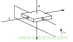 式中:B為磁感應(yīng)強(qiáng)度;IC為控制電流;RH為霍爾系數(shù);d為半導(dǎo)體厚度。