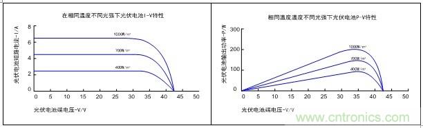 根據(jù)光伏電池參數(shù),在相同溫度、不同光照條件下,光伏電池的典型I-V和P-V特性如圖1所示。