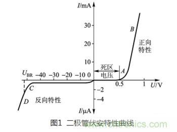 提到二極管,大家最熟悉的就是二極管的單向?qū)щ娦?,反映伏安曲線上如圖1所示。當(dāng)正向偏壓U=0.5V(硅管)時(shí),二極管開始導(dǎo)通,電流越大電壓越大,具有很低阻抗;當(dāng)加反向偏壓時(shí)二極管不導(dǎo)通,在一定范圍內(nèi)有很小的漏電流,具有很大阻抗。其這個(gè)單向?qū)щ娦裕财鸬搅碎_關(guān)的作用,所以在整流和開關(guān)方面都有廣泛的應(yīng)用。