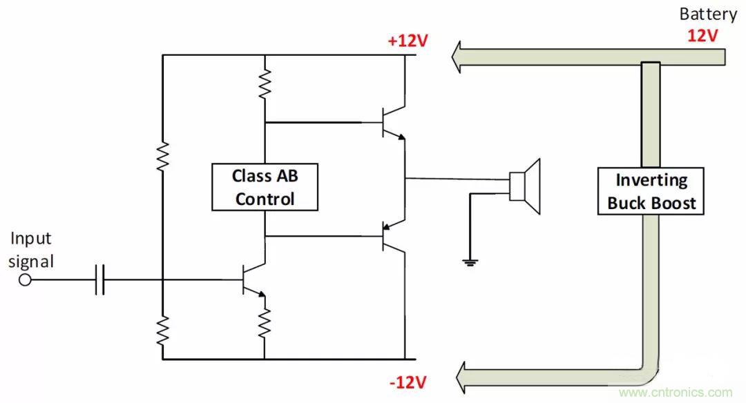 圖12B. 輸入電源為12V電池時,用反相降壓-升壓拓?fù)渖韶?fù)壓軌