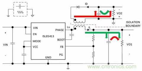 圖3.生成兩個+ VOUT軌的隔離式降壓拓?fù)洌↖SL85415DEMO2Z)