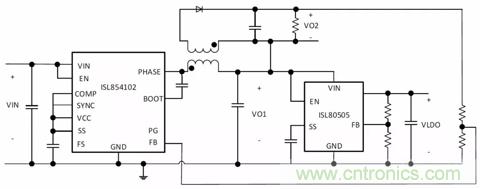 圖10. 使用額外的LDO實(shí)現(xiàn)雙穩(wěn)壓輸出