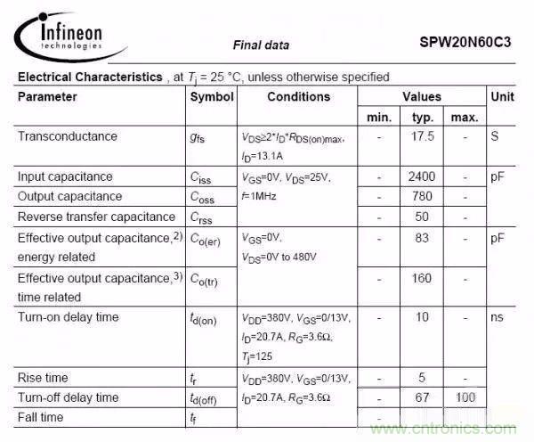 參照以上兩圖,是不同型號的MOS管,對比下輸入結電容和輸出結電容,2400PF與800PF;780PF與2200PF;一看就知道第一個規(guī)格是快管,第二個是慢管,這時候決定開關速度還要與驅動電阻匹配;常規(guī)情況驅動電阻在10R-150R比較多,選取驅動電阻與結電容有關,針對快板驅動電阻可適當增大,慢管驅動電阻可適當減小; 對于二極管,有肖特基二極管,快回復二極管,普通二極管,還有一種用的比較少的SIC二極管,開關速度SIC二極管幾乎為零,等于是沒有反向恢復,開關輻射最小,并且損耗也最小,唯一的缺點就是價格昂貴,故很少用;其次就是肖特基二極管,正向壓降低,反向恢復時間短,依次是快回復和普通二極管;需要在損耗和EMC之間折中;一般可采取改吸收以及套磁珠等措施整改EMC;