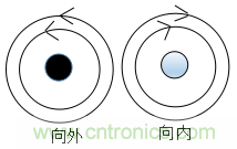 (2)當(dāng)有兩條彼此靠近且平行的導(dǎo)線,如下圖所示,其中一個(gè)導(dǎo)體的電流向外流出,另一個(gè)導(dǎo)體的電流向內(nèi)流入,如果流過這兩根導(dǎo)線的電流分別是信號電流和它的回流電流,那么這兩個(gè)電流是大小相等方向相反的,所以它們的磁場也是大小相等,而方向是相反的,因此能相互抵消。