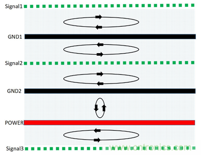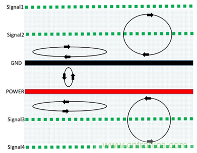 PCB疊層EMC規(guī)劃與設(shè)計(jì)思路的核心就是合理規(guī)劃信號回流路徑,盡可能減小信號從單板鏡像層的回流面積,使得磁通對消或最小化。