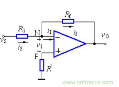 反相端輸入電流iI=0的概念,通過R2與R1的電流之和等于通過Rf的電流故