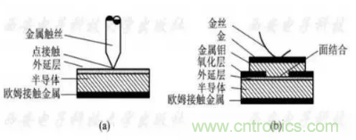 兩種管芯結(jié)構(gòu)的半導(dǎo)體一側(cè)都采用重?fù)诫sN+層作襯底,并在其上形成歐姆接觸的電極。面結(jié)合型管性能要優(yōu)于點(diǎn)接觸管,