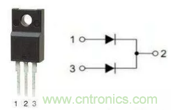 采用TO–220或TO–3P封裝的大功率快恢復(fù)二極管,有單管和雙管之分。雙管的管腳引出方式又分為共陽(yáng)和共陰。