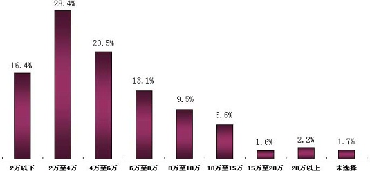 - 電子工程師收入水平:2~4萬元/年的比例最大,高于6萬/年的比例則超過了34.7%。