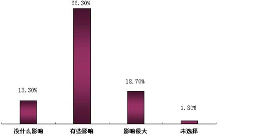 為了延展此次調查的規(guī)模,我們特意設置了這個問題,向工程師了解他們身邊其他電子工程師的受影響程度。根據(jù)調查的結果,超過84.9%的調查對象受到了不同程度的影響。其中,18.7%的工程師受影響很大,可見此次經濟危機的影響程度可謂深遠,這更需要我們有足夠的耐心和勇氣去面對。(見圖表五)