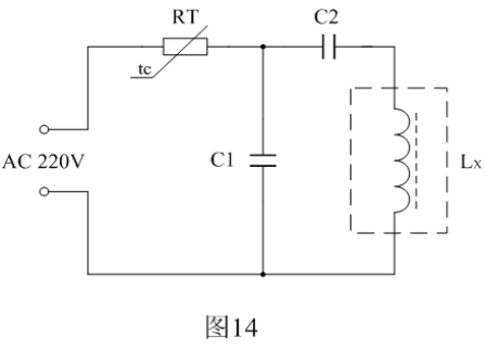 圖14中RT為熱敏電阻,Lx為行推動(dòng)變壓器的初級(jí)線圈,C1為分流電容,C2為限流電容。電容C1和C2的大小,需根據(jù)行推動(dòng)變壓器初級(jí)線圈勵(lì)磁電流的大小來(lái)決定。一般消磁電流需要達(dá)到極限電流Imax的3~5倍。