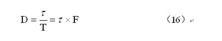 c.開(kāi)關(guān)電源變壓器工作電壓的脈沖寬度 ,可由開(kāi)關(guān)電源在某工作電壓狀態(tài)下(最高或最低),對(duì)應(yīng)的占空比D求得。下面(16)式和(17)式是計(jì)算脈沖寬度 和占空比D的關(guān)系式: