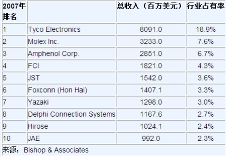 另外,北美將遇到最嚴(yán)重的收入下降,銷售額下降27.8%,達到67億美元,中國的連接器銷售額將碰到最好時期,收入將上升0.7%。