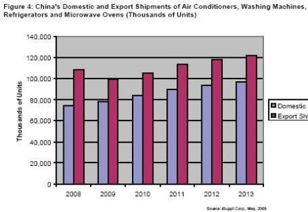 中國的大型國內(nèi)設(shè)備制造商控制著主要家電市場。這些企業(yè)正在國內(nèi)市場推行產(chǎn)品差異化策略,對于出口市場則以成本掛帥。