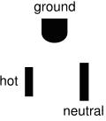 北美ANSI/NEMA標(biāo)準(zhǔn)插座的安裝方向沒有限制(圖3.4a),插座的零/火線通過插孔尺寸識別——零線插孔較火線更寬(圖3.4b)。相應(yīng)地,插頭上零線插片也較寬(圖3.4c)。這樣,即使插頭為兩芯也能防止插反。相關(guān)標(biāo)準(zhǔn)還特別規(guī)定,20A插頭的零線方向與火線方向垂直(圖3.4d),與之匹配的插座零線插孔為T形(圖3.4e),可向下兼容兩種不同插頭。