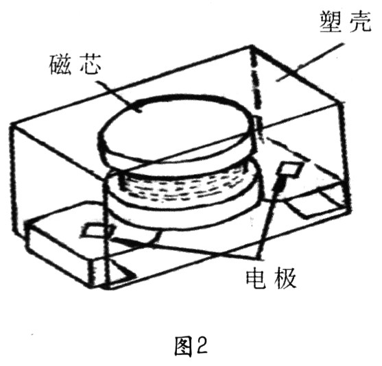 另一種形式的片式電感器是片式繞線電感器,這是對傳統(tǒng)繞線型電感器的一種改進(jìn),采用微小型工字型磁芯,經(jīng)繞線、焊接、電極成型、塑封等工序制成,見圖2。這種類型的片式電感生產(chǎn)工藝簡單,電性能優(yōu)良(電感量大,品質(zhì)因素高),適合于大電流通過,可靠性好。但受磁芯尺寸和制造工藝限制,進(jìn)一步微小型有困難。