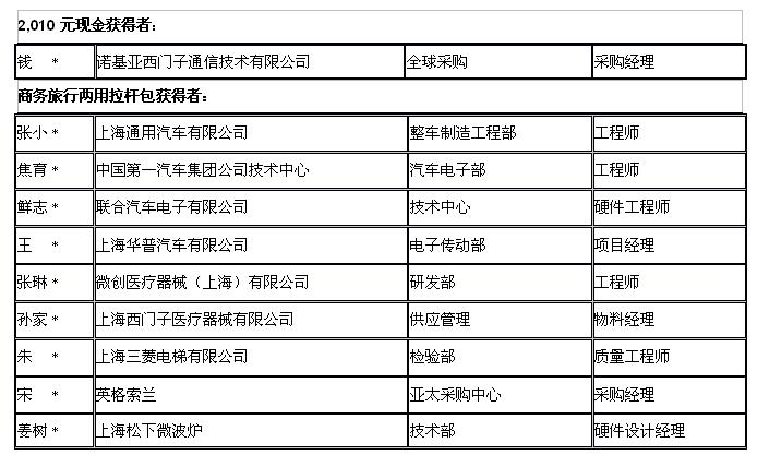 以下是第一批中獎(jiǎng)名單,并已于12月底通過(guò)展會(huì)官方電子通訊向業(yè)界通知。