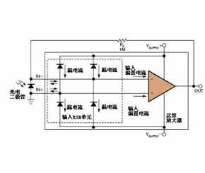 當(dāng)您研究JFET或者CMOS輸入放大器時(shí),術(shù)語“輸入偏置電流”便失去了它的意義。使用這類放大器,從放大器輸入引腳下拉或者吸取的電流實(shí)際上為輸入ESD(靜電放電)單元(請參見圖1)的漏電流。