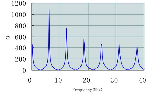研究信道阻抗特性的目的主要是為了實(shí)現(xiàn)信道與發(fā)射機(jī)、接收機(jī)之間的阻抗匹配,當(dāng)阻抗失配時,將造成信號能量的浪費(fèi),甚至出現(xiàn)啞信號點(diǎn)。由于中壓配電網(wǎng)的分支多,負(fù)載情況復(fù)雜,線路阻抗會隨距離、頻率、時間而變化,且變化范圍大,一般在幾十歐~幾百歐之間,圖2即為中壓電力線阻抗特性隨頻率變化曲線。故在實(shí)現(xiàn)寬帶網(wǎng)絡(luò)接入時,阻抗匹配比較困難;目前,通常采用在耦合技術(shù)中通過犧牲匹配性能來適合線路側(cè)寬范圍內(nèi)阻抗的方法,也有系統(tǒng)在發(fā)射機(jī)端采用阻抗自適應(yīng)的功率放大設(shè)備等,以達(dá)到較好的阻抗匹配效果。