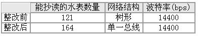 (1)網(wǎng)絡(luò)布局不合理。這時的結(jié)構(gòu)近似樹形,但RS-485總線不支持環(huán)形或星形網(wǎng)絡(luò)。同時,由于總線的不同區(qū)段采用了不同電纜,某一段總線上有過多收發(fā)器緊靠在一起安裝,或者是有過長的分支線引出總線,都會出現(xiàn)阻抗不連續(xù)點。所以應(yīng)該提供一條單一連續(xù)的信號通道作為總線。根據(jù)這一原則對網(wǎng)絡(luò)進(jìn)行了大的整改,采用單一總線將各個節(jié)點串接起來,同時進(jìn)行接地處理,如圖2所示。再次集抄的結(jié)果比先前要好,但還是有部分水表抄讀不到或數(shù)據(jù)不穩(wěn)定,未達(dá)到預(yù)期效果。表1是整改前后水表抄讀的情況。