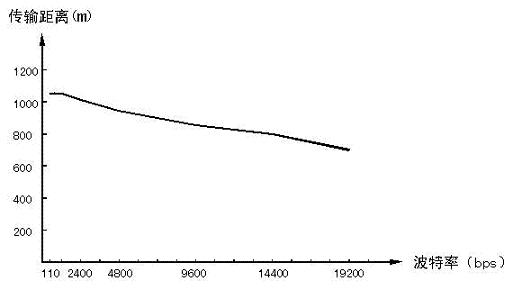 (2)波特率過高,致使傳輸距離受限。當(dāng)前的波特率14400是為了減小傳輸時間而設(shè)置的。但是由于傳輸線的歐姆阻抗、集膚效應(yīng)等損耗引起信號畸變,從而通信距離受到限制。又由于損耗與頻率有關(guān),故隨著數(shù)據(jù)率的增加通信距離減小。表2是通過實地測試得到的數(shù)據(jù)。