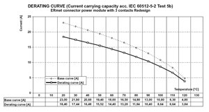 額定電流,是促使母端子特定升溫的電流量,一般為20℃或30℃。要正確使用這數(shù)據(jù),除了須了解其測(cè)試方法,也須留意其測(cè)試環(huán)境。例如:有些單純測(cè)試一對(duì)相接卻沒(méi)有安裝在外殼內(nèi)的母端子及公針。眾所周知,影響連接器的升溫的因素,包括接觸電阻、電流量及散熱渠道。在實(shí)際應(yīng)用時(shí),公針母端子是安裝在外殼內(nèi)的。因此,散熱渠道劇減。再加上一般同時(shí)使用多個(gè)接觸對(duì),更不能以額定電流峰值設(shè)置為連接器的工作電流。
