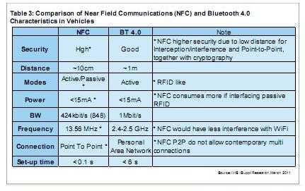 IHS公司預(yù)計(jì),NFC技術(shù)在汽車領(lǐng)域?qū)⑹且豁?xiàng)補(bǔ)充性技術(shù),并將與藍(lán)牙和Wi-Fi等目前比較成熟和普及的技術(shù)共存。因此,藍(lán)牙和NFC將互相補(bǔ)充。