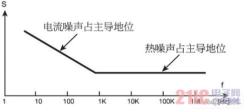圖1顯示了電阻器中總噪聲電壓的譜密度S。