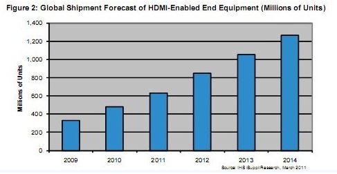 - HDMI 2011年全球出貨量增長到6.291億個