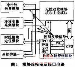 為了滿足系統(tǒng)測試任務,無線傳感器節(jié)點采用模塊化設計,各功能模塊通過SPI接口鏈接。由于系統(tǒng)功能要求,使一個模塊與多個模塊鏈接通信,其接口電路SPI工作在不同的主從機模式,使用單一SPI接口主從切換,勢必降低模塊間通信速度與靈活性。依據(jù)可編程邏輯器件CPLD有其編程靈活、易擴展性,在模塊內(nèi)部擴展專用SPI接口,試驗證明SPI接口電路設計,有簡化模塊間連接、提高通信速度、系統(tǒng)擴展性強,以及提高系統(tǒng)整體性能的特點。