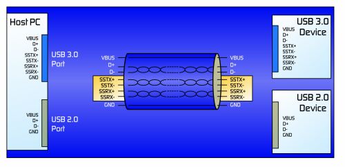 現(xiàn)有的USB 2.0協(xié)議允許高達(dá)480Mbps的數(shù)據(jù)傳輸速率,并支持即插即用、熱插拔安裝和運(yùn)行。與之相比,USB 3.0規(guī)范允許高達(dá)5Gbps的數(shù)據(jù)傳輸速率,并向后支持較低速的USB 2.0規(guī)范。
