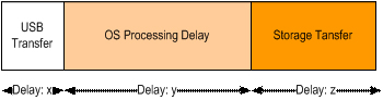 雖然USB速度快了十倍(從480Mbps 到 5Gbps),但是真正的吞吐量將遠(yuǎn)遠(yuǎn)低于理論值,因?yàn)閁SB延時(shí)(X)比操作系統(tǒng)處理延遲(Y)和存儲(chǔ)傳輸延遲(Z)都小得多,其相對(duì)于總延時(shí)可以忽略 不計(jì)。Z延時(shí)可以通過(guò)選擇更好的存儲(chǔ)設(shè)備來(lái)改進(jìn),但是Y延時(shí),則需要通過(guò)更有效地系統(tǒng)設(shè)計(jì)來(lái)管理。