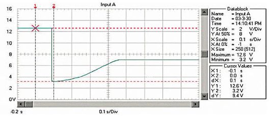 圖1 啟動(dòng)過程的蓄電池電壓波形