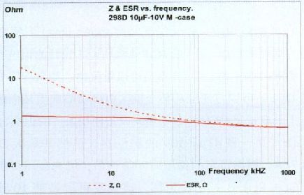 舉例來說,如果使用10μF的鉭電容用于負載線瞬態(tài)穩(wěn)定,10kHz下測得的ESR的安全工作范圍為最大10Ω,最低10mΩ(見圖2)。
