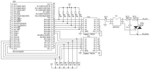 可控硅相控調(diào)光電路如圖3 所示。單片機(jī)的控制信號(hào)經(jīng)74HC04反相后送到光耦MOC3023,光電隔離后輸入到可控硅T16C6F 的控制極,控制可控硅的導(dǎo)通角,實(shí)現(xiàn)調(diào)光。