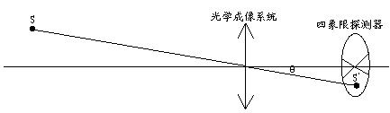 四象限光電探測器實際由四個光電探測器構(gòu)成,每個探測器一個象限,目標光信號經(jīng)光學系統(tǒng)后在四象限光電探測器上成像,如圖1。一般將四象限光電探測器置于光學系統(tǒng)焦平面上或稍離開焦平面。當目標成像不在光軸上時,四個象限上探測器輸出的光電信號幅度不相同,比較四個光電信號的幅度大小就可以知道目標成像在哪個象限上(也就知道了目標的方位),若在四象限光電探測器前面加上光學調(diào)制盤,則還可以求出像點偏離四象限光電探測器中心的距離或θ角來。