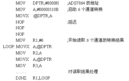 根據(jù)真值表,可以用圖4中的邏輯電路來實現(xiàn)這兩個使能信號。系統(tǒng)的最終目標就是獲取數(shù)據(jù),然后計算得出結(jié)果。89C51控制ADS7864轉(zhuǎn)換和讀取轉(zhuǎn)換結(jié)果的代碼如下: