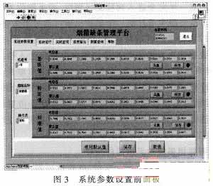 如圖2所示,上位機(jī)煙箱缺條管理平臺(tái)系統(tǒng)主要包括串口通訊、參數(shù)設(shè)置、系統(tǒng)報(bào)警、數(shù)據(jù)存儲(chǔ)、報(bào)表輸出、剔除信號(hào)輸出等6大模塊;利用LabVIEW建立與下位機(jī)進(jìn)行串口通訊的子VI,對(duì)接收到的數(shù)據(jù)進(jìn)行處理,判斷是否發(fā)生缺條。當(dāng)發(fā)生缺條時(shí),上位機(jī)除了產(chǎn)生剔除控制信號(hào)、報(bào)警之外,還將缺條信息存入數(shù)據(jù)庫(kù)中,方便操作人員日后查詢等。圖3為煙箱缺條管理平臺(tái)的參數(shù)設(shè)置前面板圖。