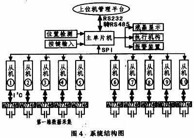 整個(gè)下位機(jī)系統(tǒng)如圖4所示,微控制器采用飛利浦公司51MX內(nèi)核的Flash單片機(jī),主單片機(jī)采用P89C51RD2,從單片機(jī)采用P89C669,主機(jī)與從機(jī)之間采用SPI通訊方式,從機(jī)與微電容數(shù)字轉(zhuǎn)換芯片AD7746之間采用I2C通訊方式。
