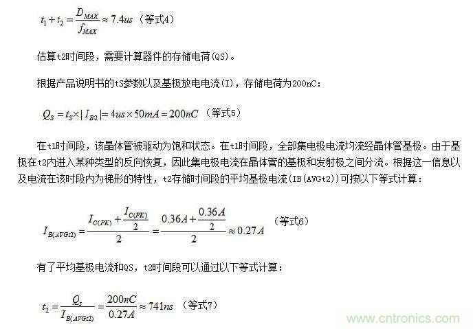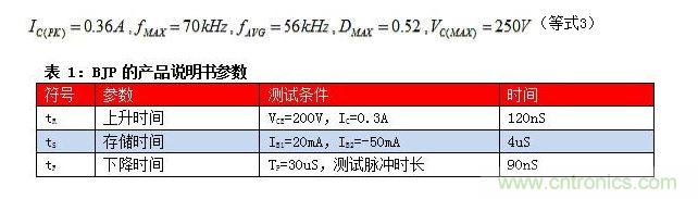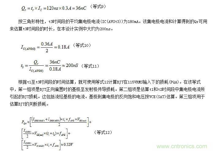 集電極反向恢復電荷(Qr)數(shù)量可用來估算開關(guān)損耗時間段t3。根據(jù)BJT產(chǎn)品說明書,參數(shù)Qr的計算結(jié)果為36nC。